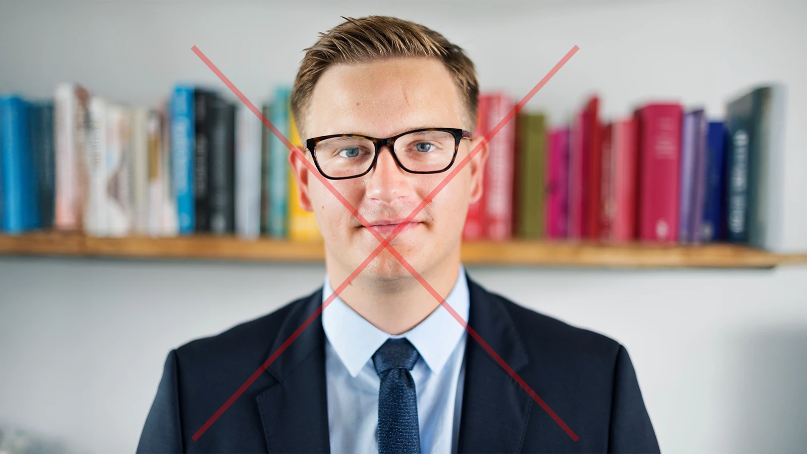 Stand in front of the camera with a neutral expression and avoid smiling