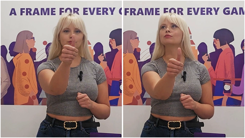 Focus your eyes on the finger.