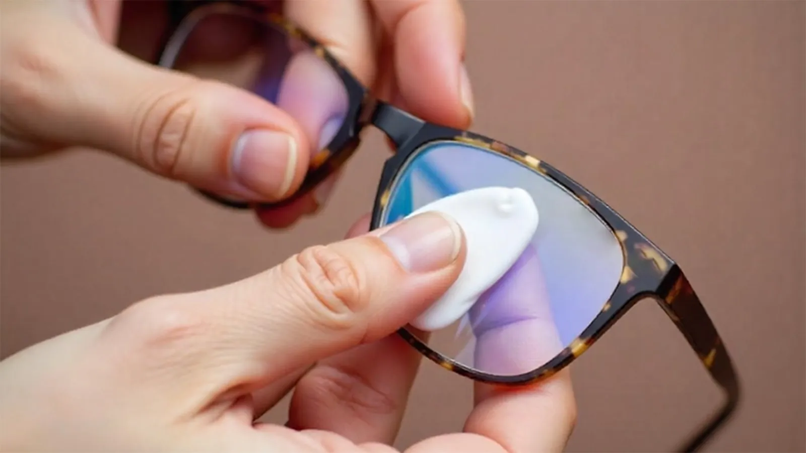 It is best to use safe cleaning solutions for your lenses, which you always get when you purchase your glasses. They are better than dish soaps that could potentially harm your lens coatings. Even lotions and solutions with microbeads can do more harm to your glasses.