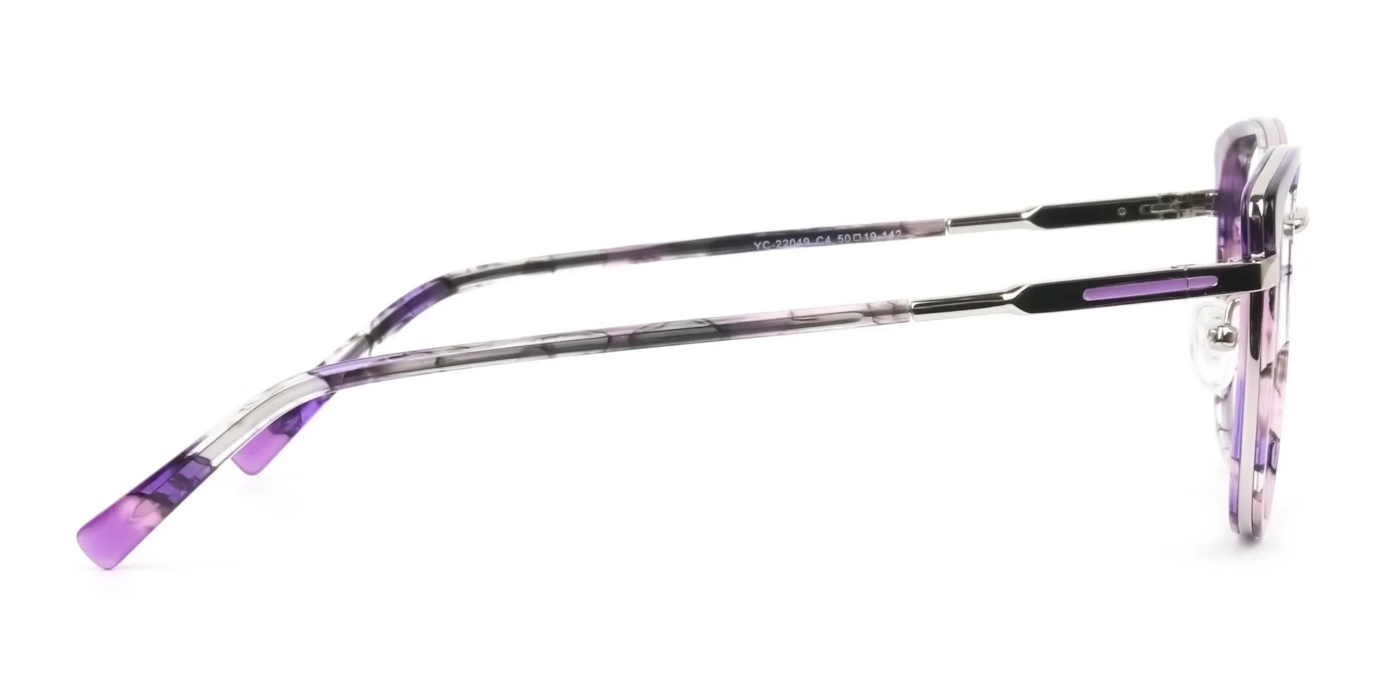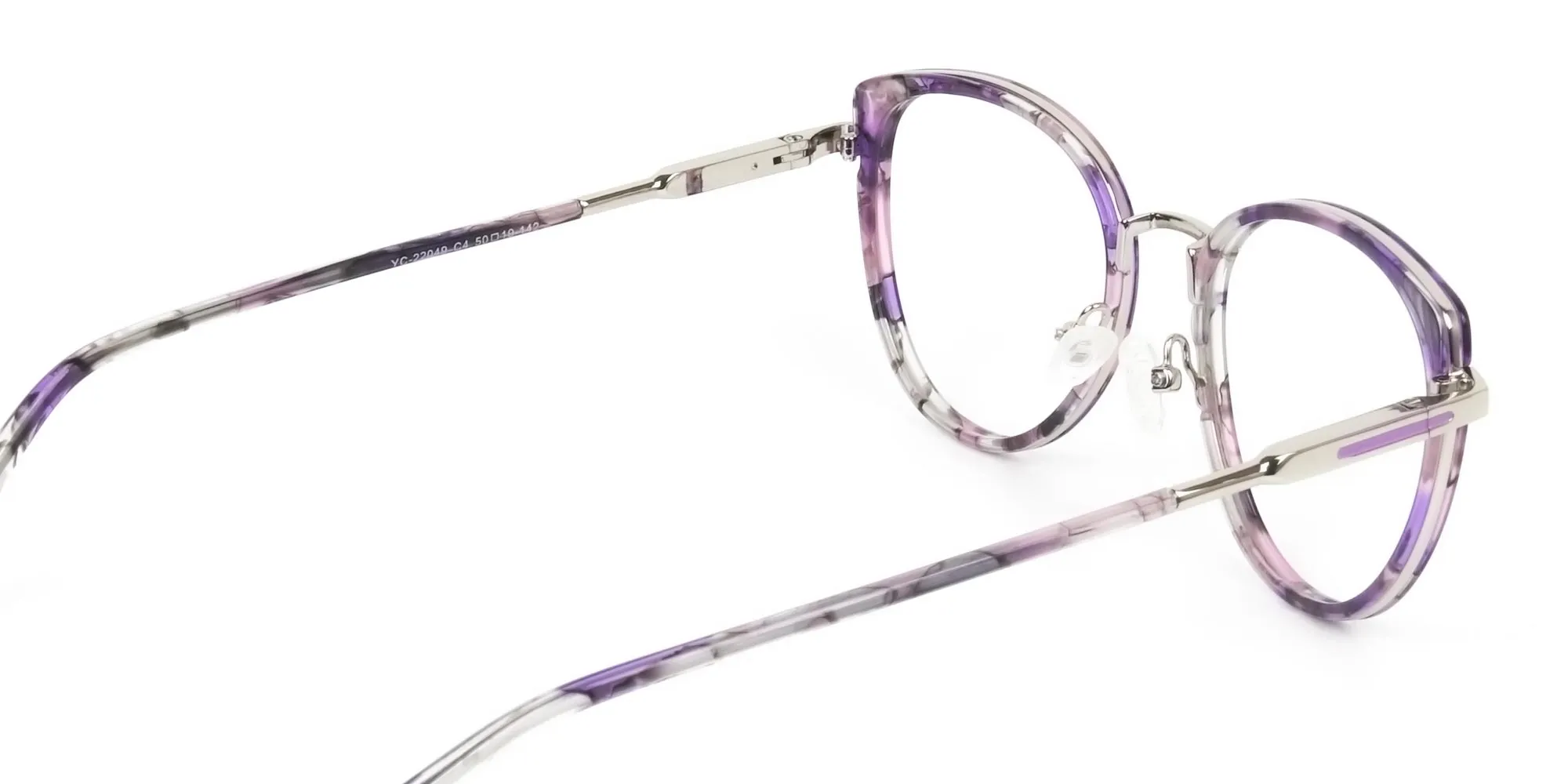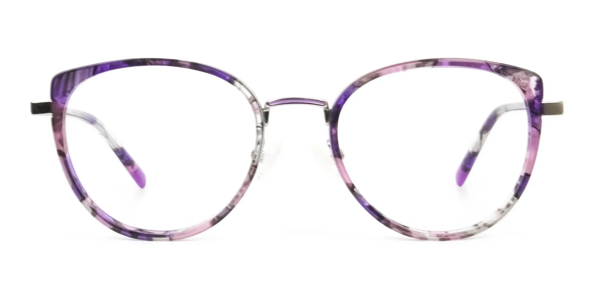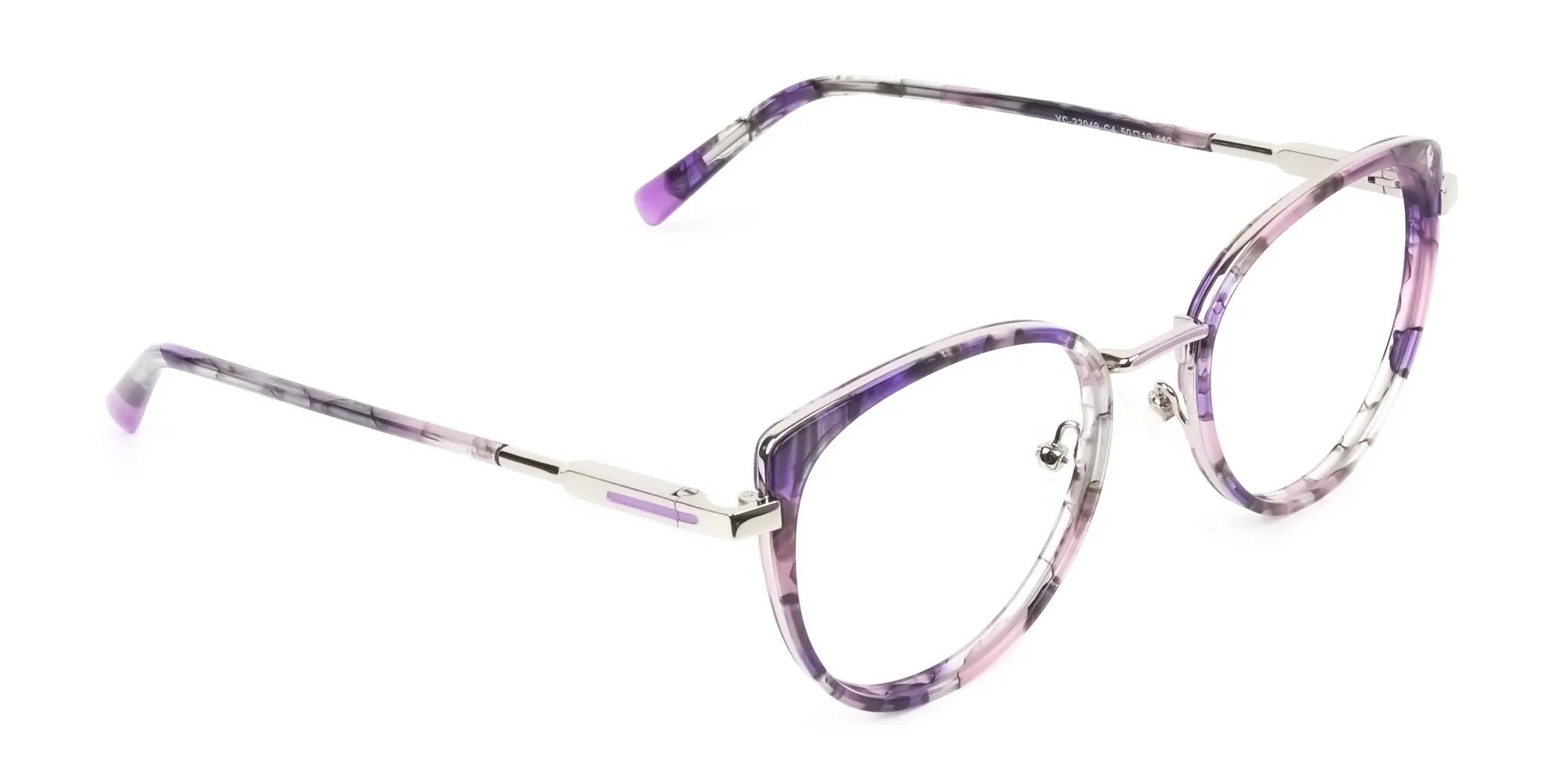Purple tortoise cat-eye glasses are ready to add scintillating nuances to your look. Grab them to enjoy the retro style that brings with it admiring glances for you. You can choose them as your reading glasses or as a prescription pair. Several women around the world love using them as fake glasses for a stylistically appealing look. The stylish cat eye glasses also sport a subtle round shape that makes them look tantalising on face shapes like oval, square, and heart. Plus, you can wear these purple tortoise cat-eye round glasses with any outfit and any casual occasion. They are sure to make you the queen of the room. Talking of quality, it is supreme. Thanks to the metal and acetate build of the frames, these modern eye frames stay strong and durable. The spring hinges, purple temples, screws and even lenses contribute their bit to make them long lasting. To add to this comfort, there are the snugly nose pads and a just-right height nose bridge. So, you see. These hipster purple tortoise cat-eye glasses are at par on comfort, quality, and style. All you need to do is grab a pair right away!