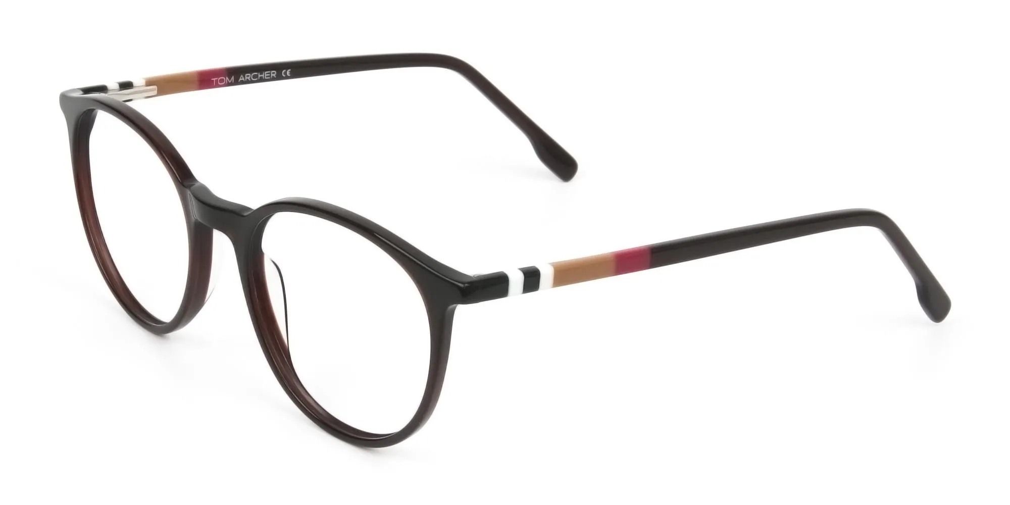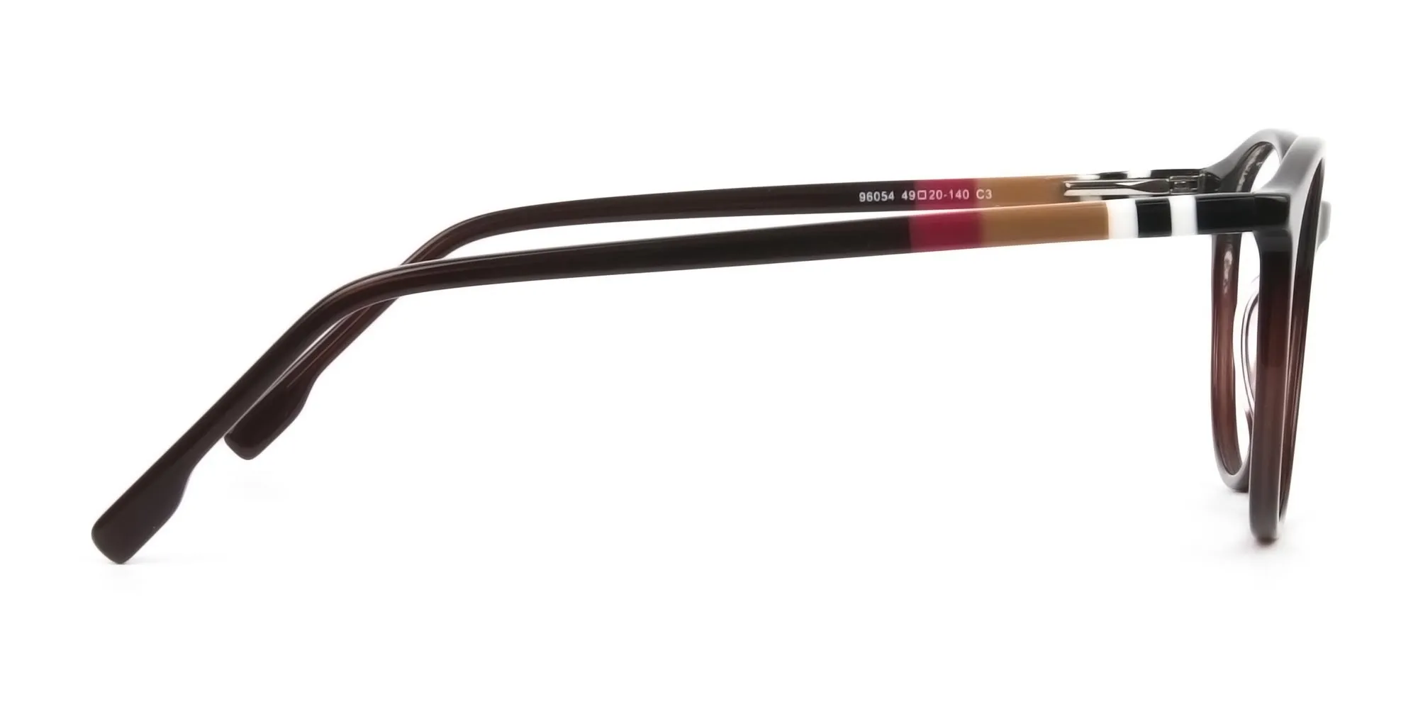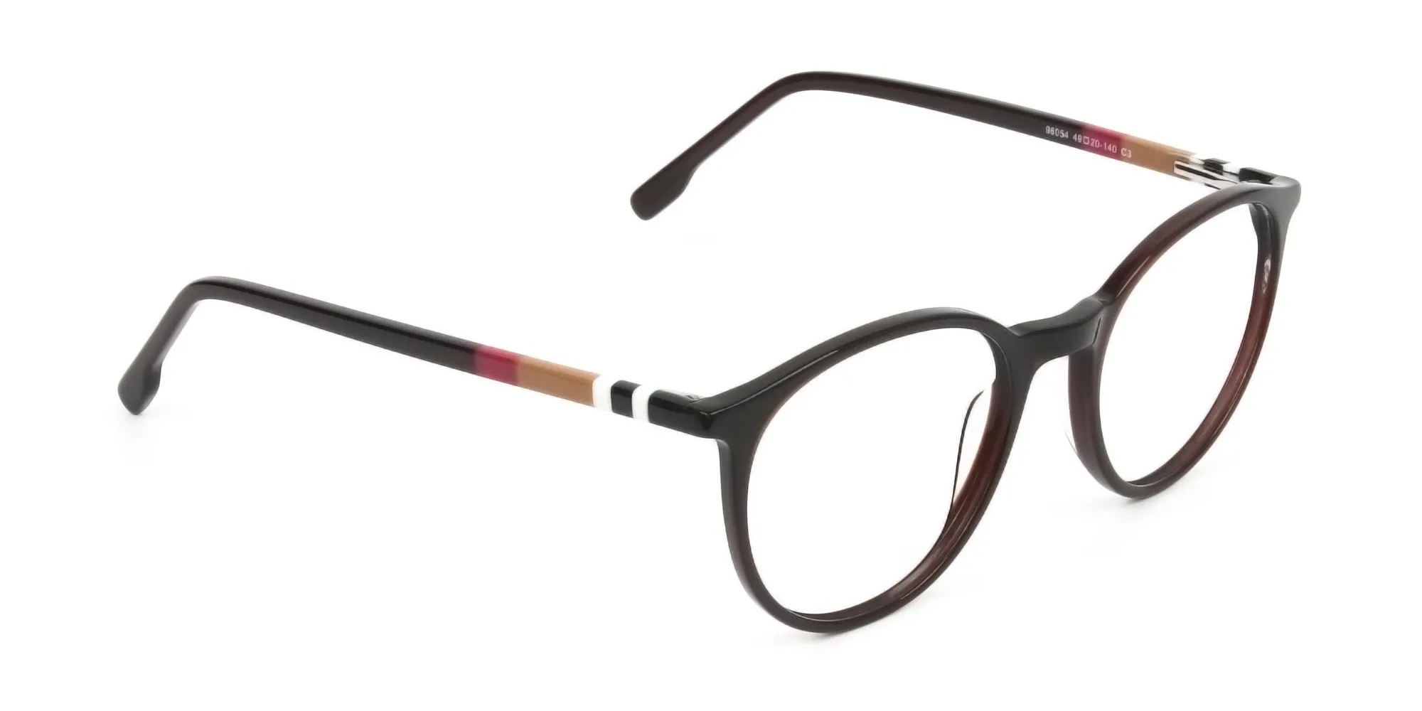 Designer Dark Brown Acetate Eyeglasses in Round are the full-rimmed marvel ready to enrich your persona. Let your eccentric character be garnished with the red, brown and white stripes at the temples of this pair. As the round style smoothly enhances your appeal, these hues on the side boost the elegance of the pair. What’s splendid is the fact that these Dark Brown Eyeglasses suit almost any skin tone, occasion and attire. Thanks to the down-to-earth hues. The style compliments the faces with oval, square, or heart shapes well. Plus, both men and women can garner attention as it serves all genders equally. Coming to the composition, the modern frames are built in durable acetate. Not only does it promise a long lasting impression, but also adds a graceful modishness to your appearance. To add to that, the lightweight temples and frame body made in featherlight acetate makes them offer some ease. A relaxing statement as such from the Dark Brown Round Eyeglasses helps your nerves stay calm. They help you stay away from strains and related issues. Thus, you see the frames are high on standards, care and style, making them a sight to behold. Time to get the Designer Dark Brown Acetate Eyeglasses in Round today! Why not gift yourself a new pair of reading or prescription glasses?