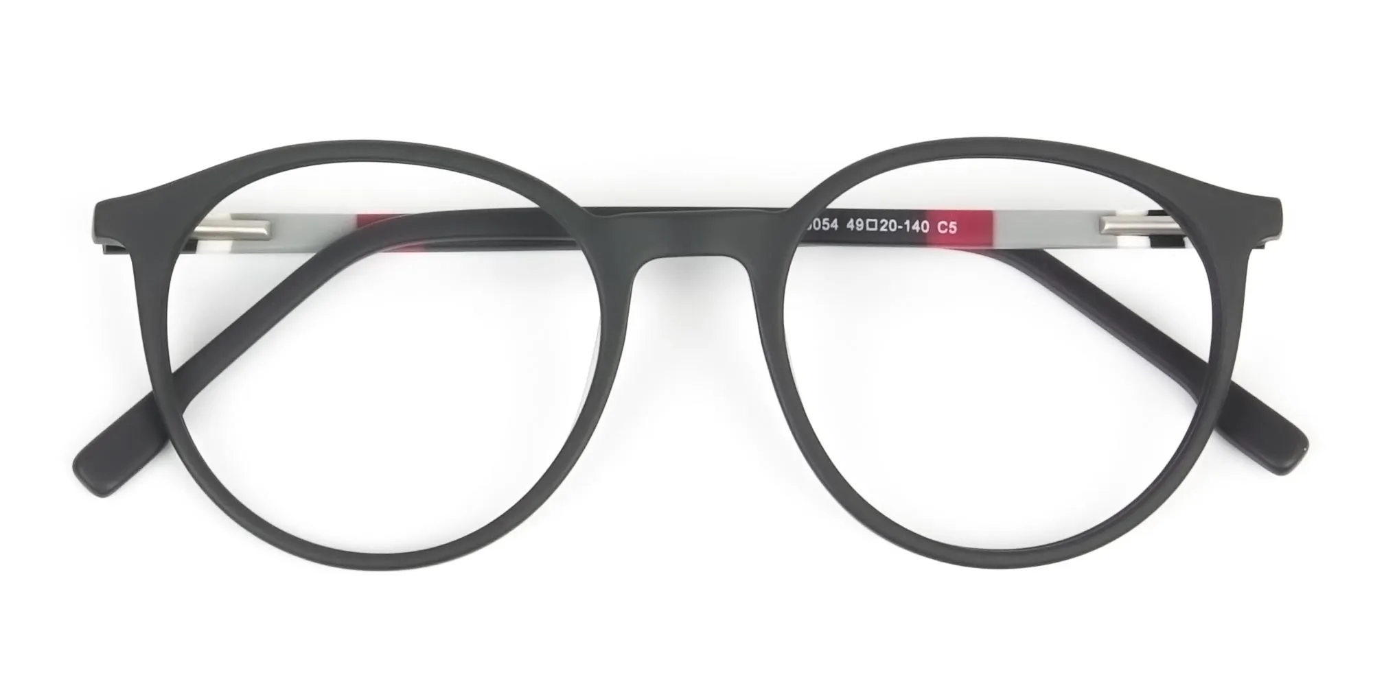 Designer Matte Black & Silver Grey Eyeglasses make a top-notch part of your daily look. All you need to do is get them as your prescription or reading glasses to enjoy their simplistic creative edge. The delightful appeal of the retro round frames comes from the full-rim that mesmerises those around you. Thus, bringing you showers of praises for the unspoken charisma of the frames and your twinkling eyes as well. Being unisex, the Silver Grey Round Eyeglasses give a chance to every gender to look flawless in them. And don’t worry, as they sport hues like matte black and silver that speak of the classics, you can’t go wrong with them ever. Regardless of your attire, and whether it’s an interview, cocktail party or school reunion, you are sure to have a great time with them. Along with the grey and red stripes at the temples, it is the premium quality that garners quite a lot of attention. Made in acetate of supreme standards, the modern eye frames promise to be durable and sturdy. With that they also keep care of the comfort thanks to their lightweight character. Thus, making sure that looks, ease and standards are never compromised on. Grab yourself a pair of these Designer Matte Black & Silver Grey Eyeglasses to experience the pleasure.