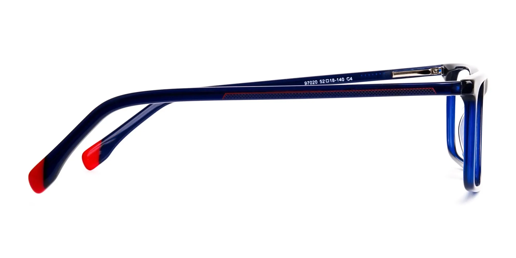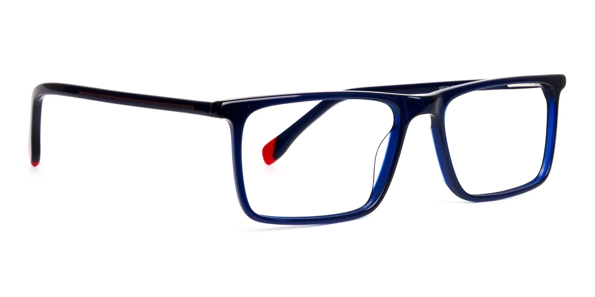 An essential silhouette for a limitless application. Our blue and red rectangle shaped eyeglasses frames meet a lot of needs in its easy-going construction. Inspired by the classic rectangular silhouette, these frames embody a smart style and academic confidence. Designed into contemporary style with deep blue shade makes the glasses look more simplified. All good reasons to keep the classics the same old but in modern shades to help adapt. Incorporating robust hinges, befitting temples and sloped browline, the frames allow great comfort. Balancing the monotonous colour are the vivid hints of red at the hockey end temple tips. A pinnacle of British craftsmanship, these glasses are made out of premium bio-acetate for excellent flexibility and strength.