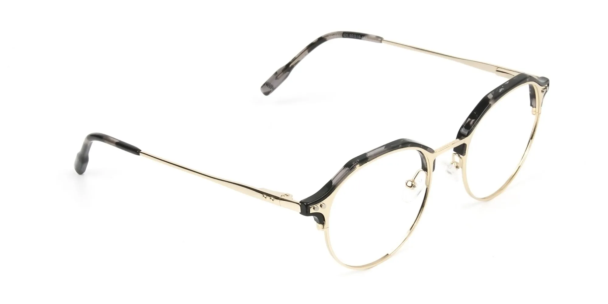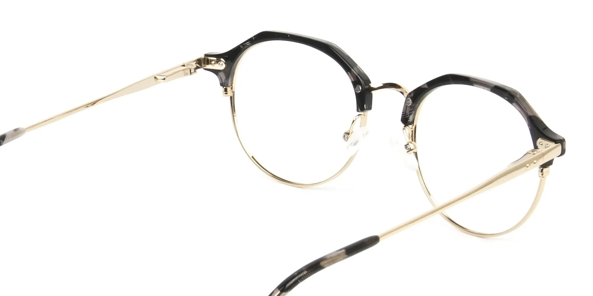 Titanium Marble Grey & Gold Weightless Glasses are a trendy pair to don. Their slim and slender gold temples with the touch of retro nuances makes them stick out a mile. Sporting a blend of styles including browline, round and geometric, these modern eye frames help to make styling easy for you no matter what your face shape. Oval, square or heart, any shape of face you have, they will look flawless on you. No matter which event you are heading to - a client meeting, a night-out with your love or friends meet. And yes, the classy yet modernized frames are designed to suit both men and women alike. What’s special about these Acetate and Titanium Weightless Glasses is the mixed material composition. The materials ensure that the fashionable frames stay lightweight for your comfort. They also have adjustable nose pads to give off support. The titanium metal adds to the stylish designer appeal. But more importantly, it ensures that the modernistic frames are durable and strong in character. The weightless metal glasses see to it that you never have to go through any pains that usually come from heavy glasses. All in all, the new-fashioned pair is a must-try to cherish its style, comfort and eccentric quality. Go and get them today as prescription or reading glasses. The ultramodern Marble Grey & Gold optical glasses await!