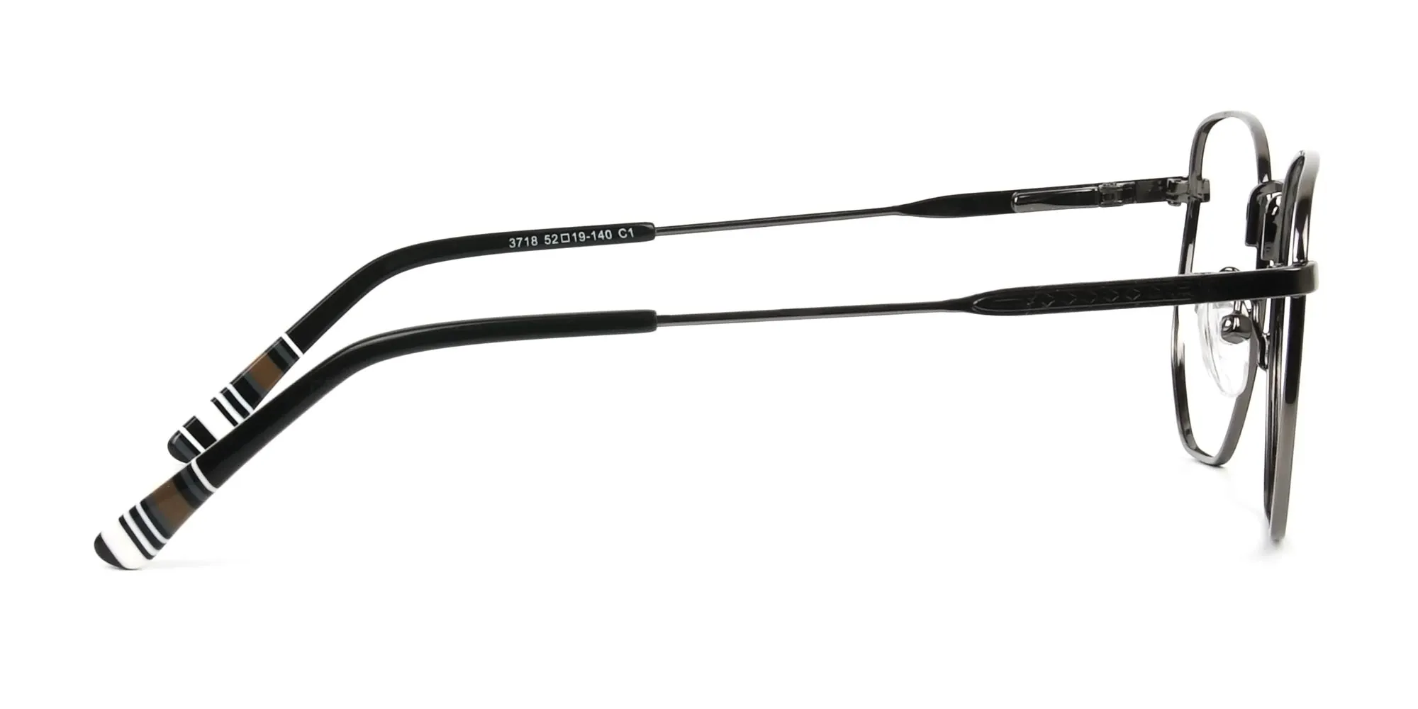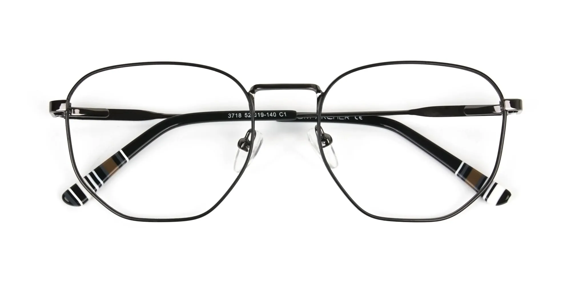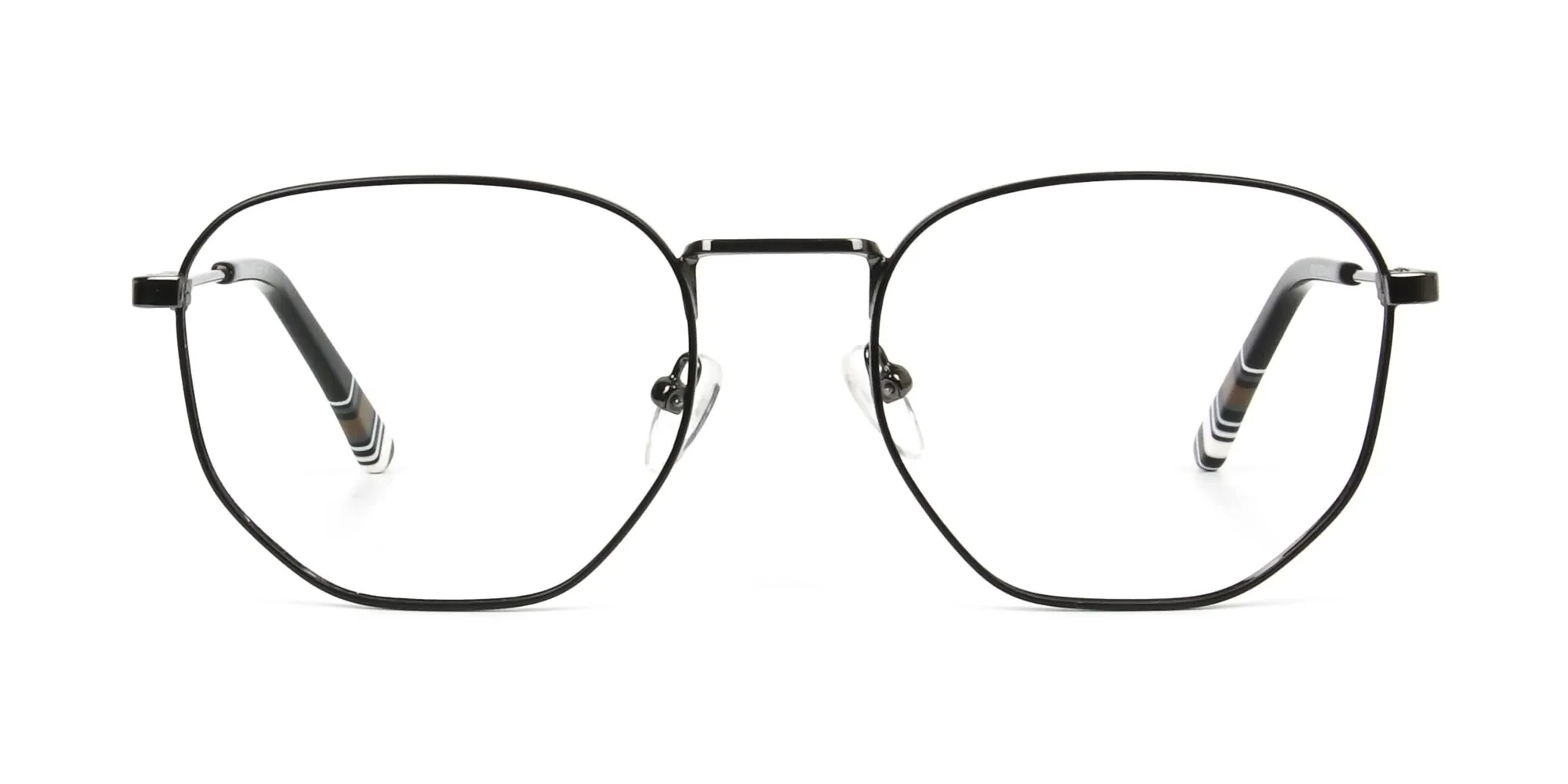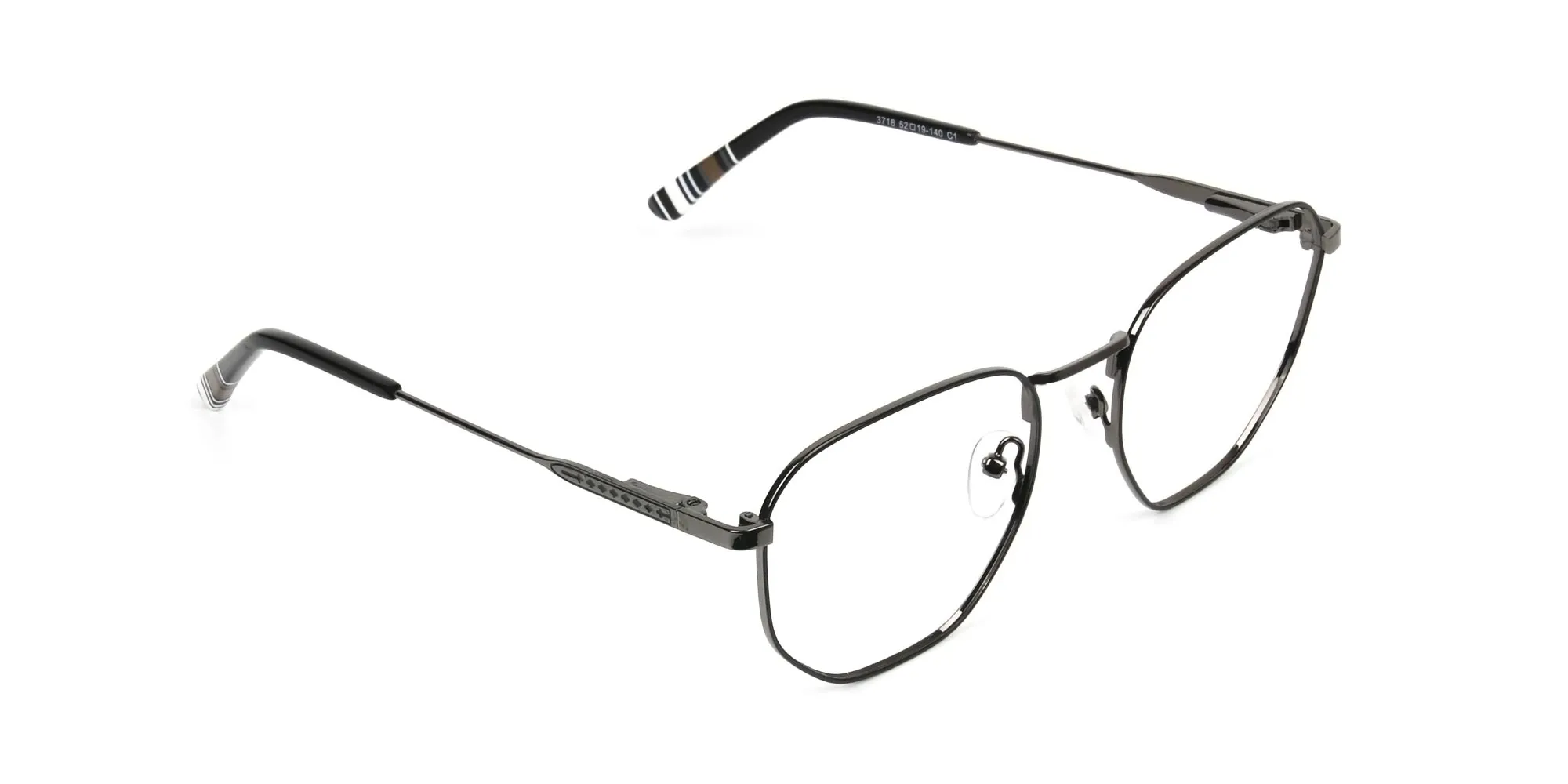 Square Geometric Gunmetal Black Spectacles present the ultimate combo of chic and class. Here class is an attribute of the square style and the black colour. And chicness is a result of the geometric eccentricity. Thus, making them unique enough to suit your voguish appeal. What’s amazing about these modern eye frames is the fact that they can suit anyone. To enjoy their enchantment, you can get them as a reading pair of prescription glasses. If vision correction is not your need, use them as a fast fashion accessory to amp-up your fashion spirits. However, it’s not just their eccentric shape and style that deserves appreciation. The full-rim feature, the metal make, and the comfy and adjustable nose pads also have a claim on it. It’s the full-rim that attracts people's attention to you, that further makes them admire your scintillating charm. It’s the metal material of supreme quality used in the composition of the frames that ensures its strength and long lasting nature. It’s the nose pads that give off support and offer a relaxing statement. So, embrace the style and care of these fine frames by adding them to your ensemble. Your pair of Unisex Geometric Gunmetal Black Spectacles await!