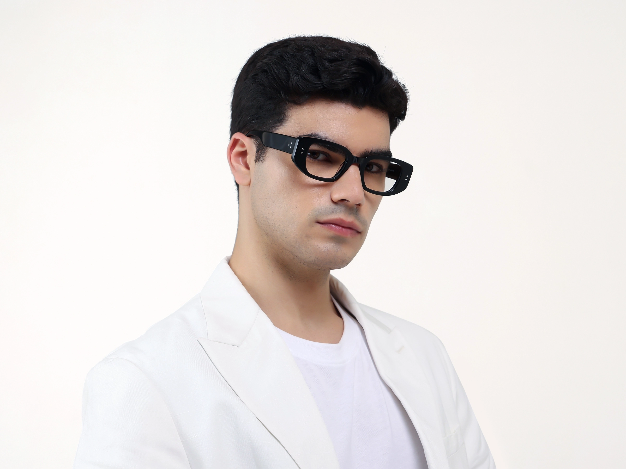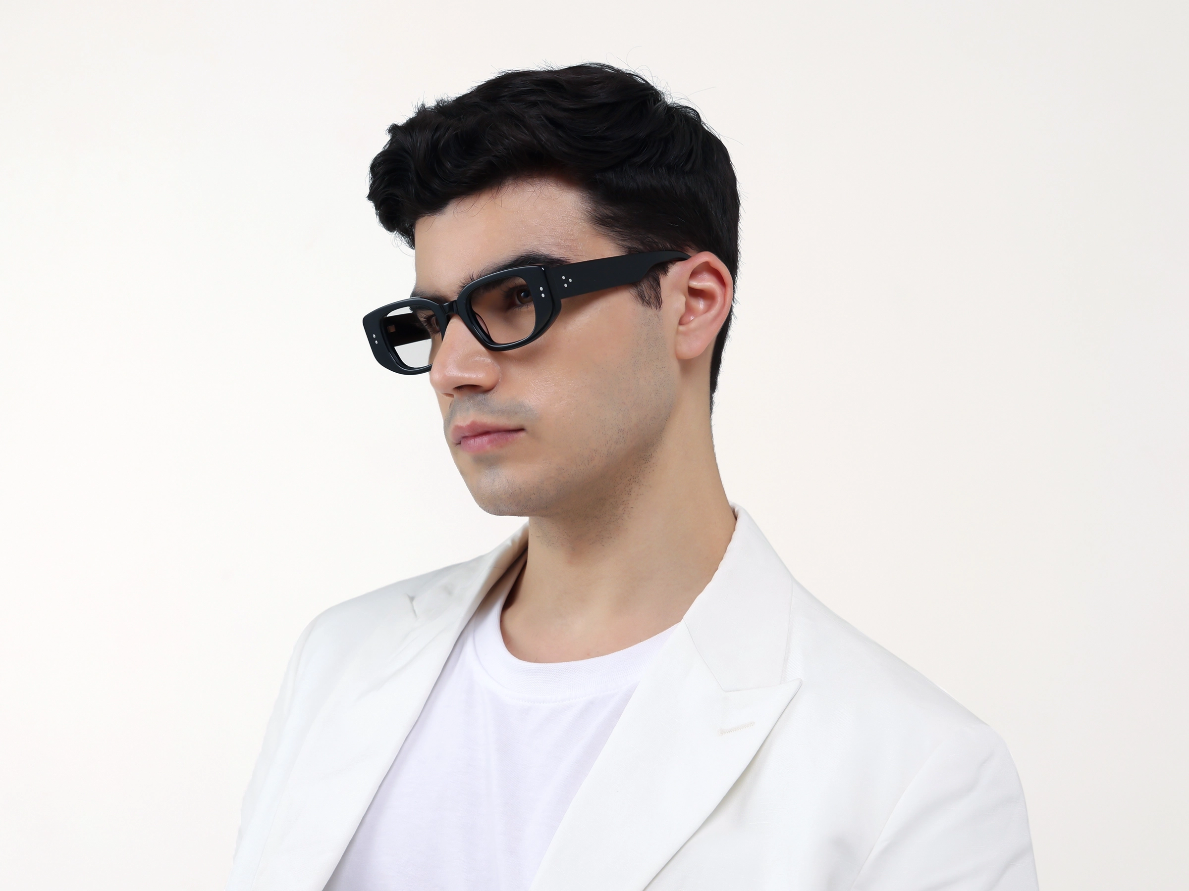 If you want your glasses to be seen, this is how you do it. The thickness adds weight to your face in a good way. It balances out softer facial features and gives you structure where you might not have it naturally. Rectangular shape keeps things angular and clean, which works well in professional settings or if your personal style leans sharp rather than soft. Black means they work every single day, no matter what. These aren't for people who want to blend in, and that's the point. They're confident, direct, and they make your face more memorable.