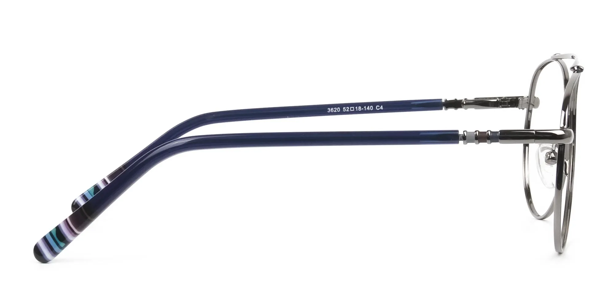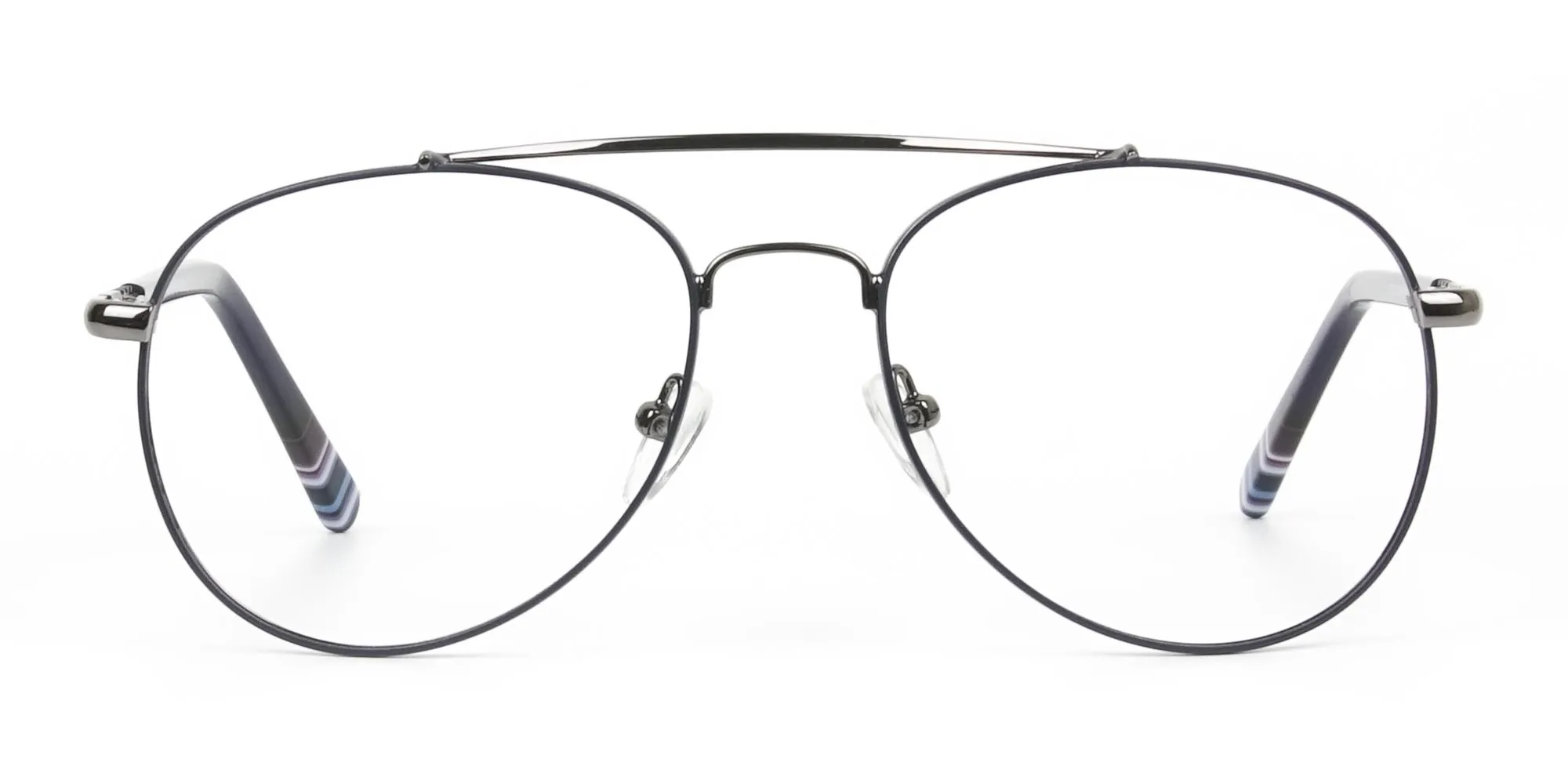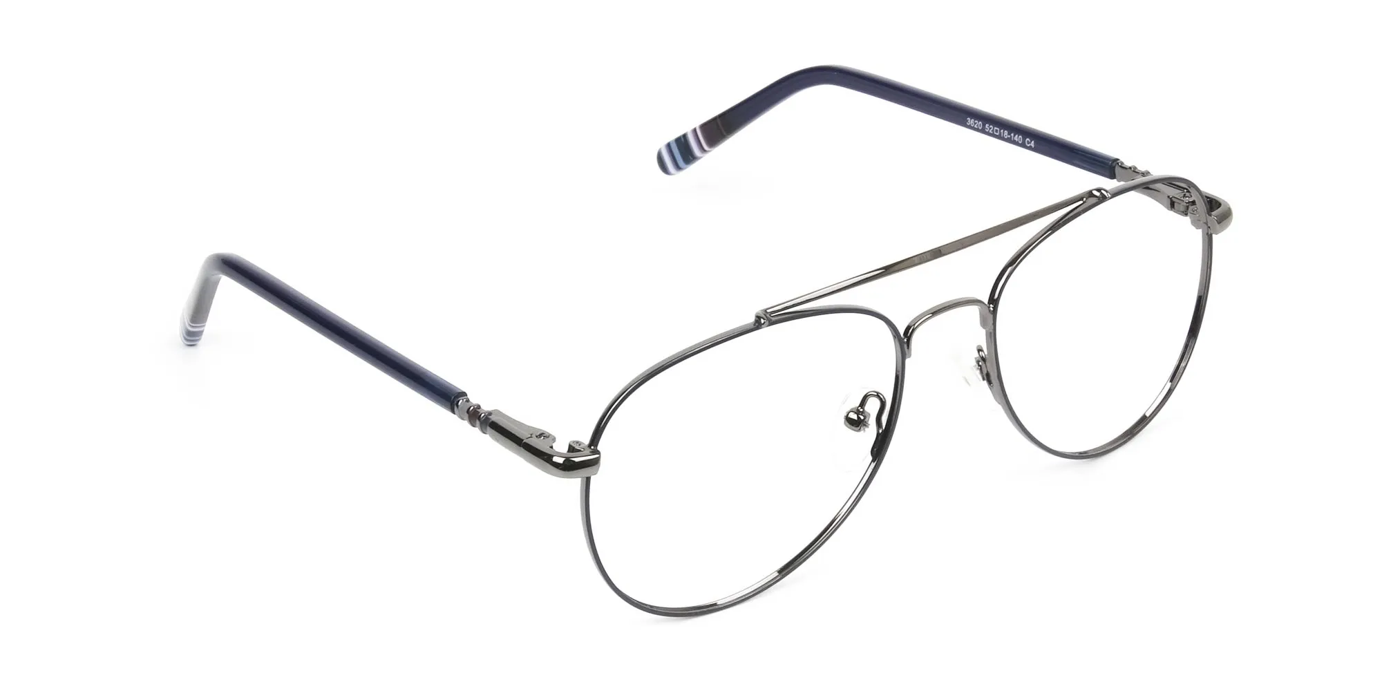 Pilot Gunmetal Blue Fine Metal Glasses bring back classics with the perfect modernistic appeal. Pilots' glasses have always been exact historic eyeglasses, but lately, the design is not that futuristic and appealing enough. Hence we went ahead and brought you the frame that's polished, clean designed and offer subtle silhouettes. Our all-new dark navy and gunmetal glasses are inspired by the 80's design but created with a minimal craft that turns to be handy and comfortable to wear. The gunmetal texture with blue offers a deep shade to your glasses and highlights the essence of toughness in metals. Gunmetal texture offers a sober hue, a frame that's constructed with the perception of rocking them in demanding situations. It is the frame for the leader, person that gives the sense of authority and superiority. Our Fine Metal Glasses in gunmetal grey features a sleek-looking top bar with downward nose bridge. It contains the classic pilot shapes lenses that are oversized and with comforting nose pads that offer smooth adjustability. Additionally, the temples are available in dark navy blue attached with our sturdy spring hinges at the corners. These Fine Metal Frame Glasses frames are not playing around your personality. It is compelling enough to convey a sense of authority and seriousness to your look. You look your best and confident self in whatever department you step in.