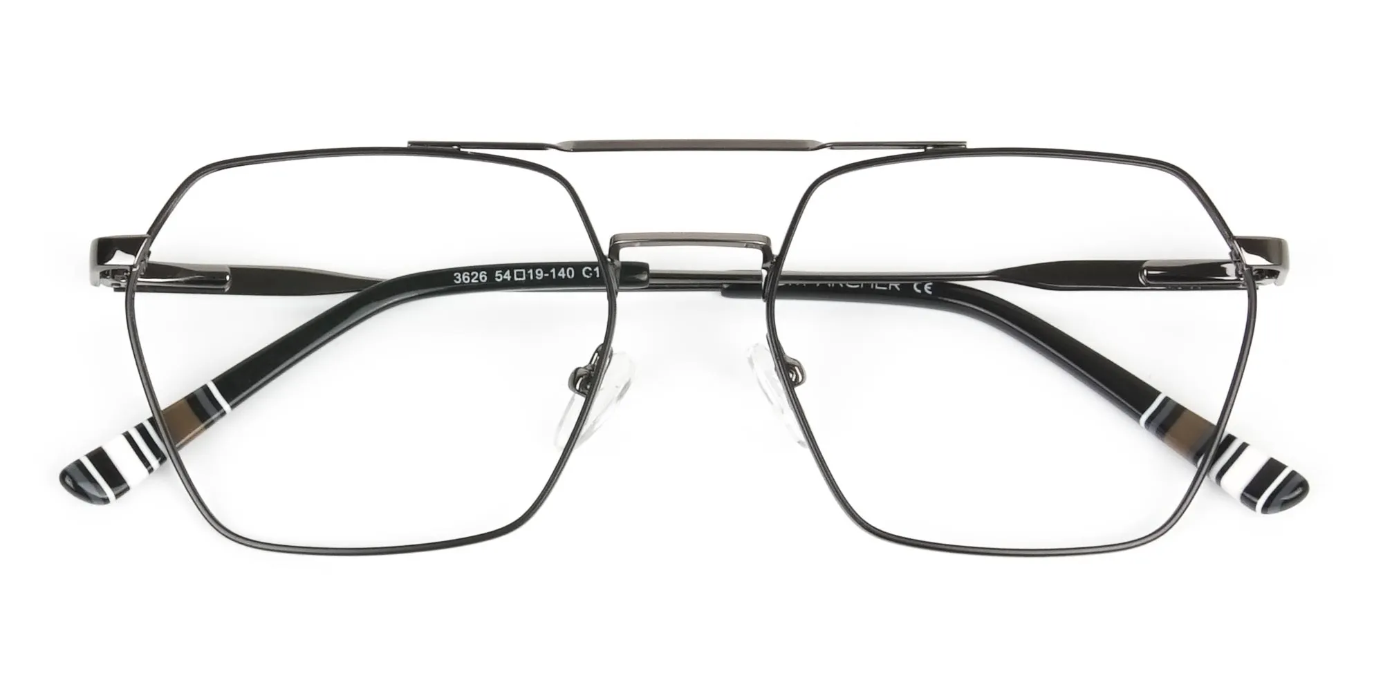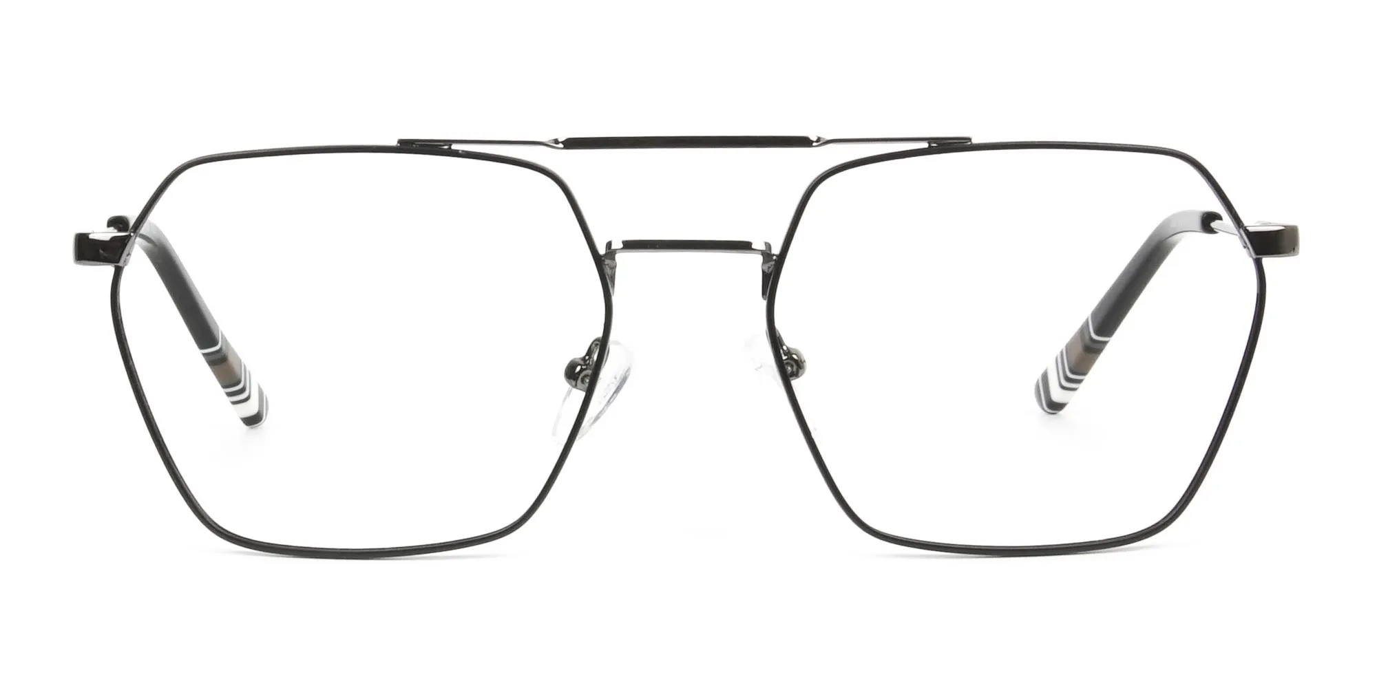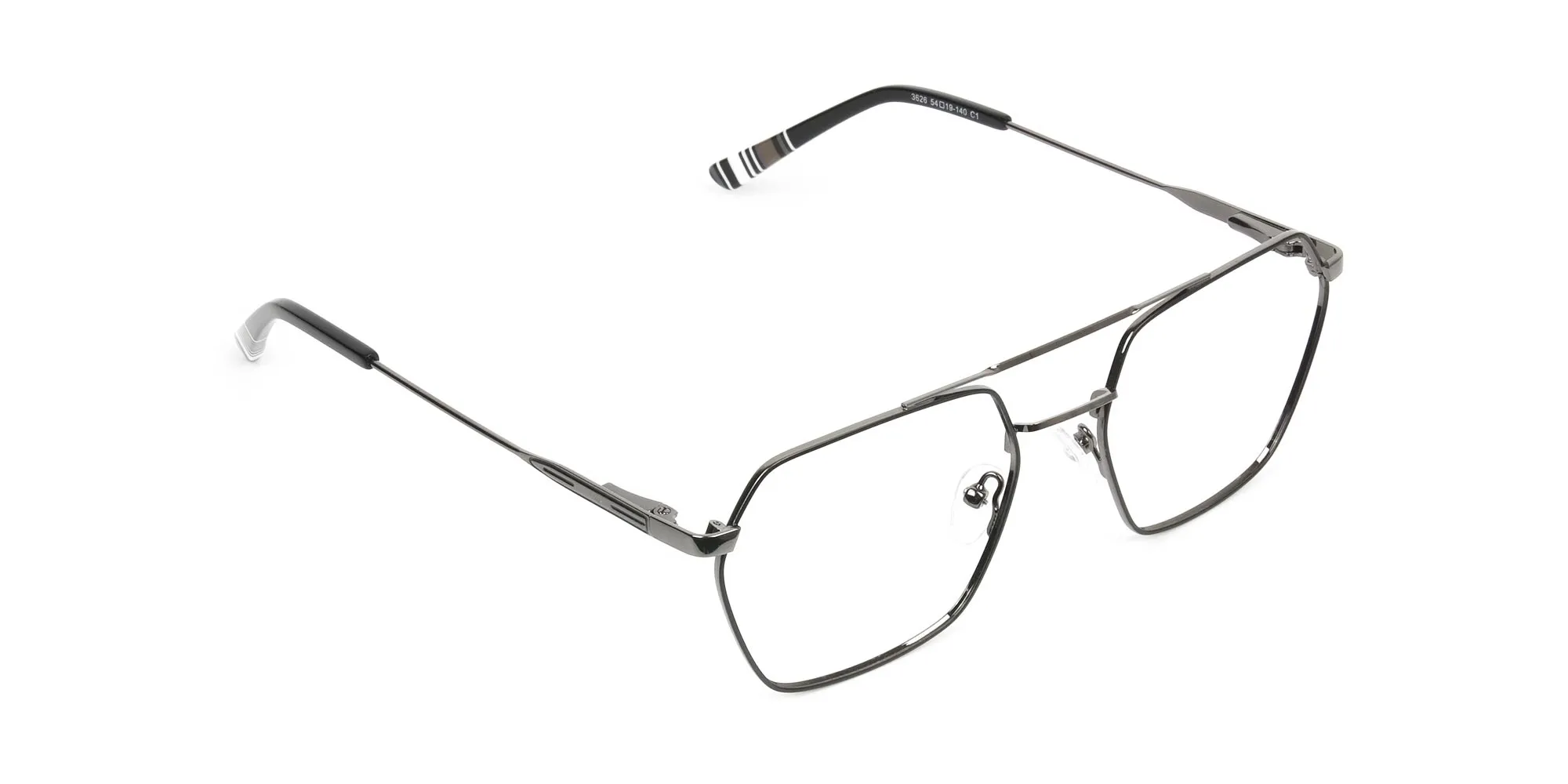 Our black gunmetal hipster glasses are less hipster but more artistic and perfect from all angles. The hexagonal shape is fresh to our eyes, a change in design we've been waiting to see in glasses. The subtle metallic lines shaped into the geometric straight lines bring back the love for geometric shapes. Geometric shapes are soothing and symmetrical that look perfect on face shapes. Face shapes with perfect symmetry are considered beautiful, and our new fashion statement helps you to attain that look. The subtle yet stunning hexagonal frame is perfectly balanced and brings perfection alive with its sturdy creation. The black texture on the frames enhances its shape even better, which creates an artistic and eccentric appearance. The black gunmetal geometric hipster glasses are crafted with a thin top bar and sleek looking nose bridge. The design also features extended nose pads constructed to offer exceptional comfort and adjustability. While the temples are out-and-out built with sturdy spring hinges in black gunmetal with thick black acetate temple tips. These glasses are redefining a new aspect of glasses, pilots style in a youthful addition. Also equipped with smartly designed nose pads, the glasses give you an out of ordinary appeal and practical use.
