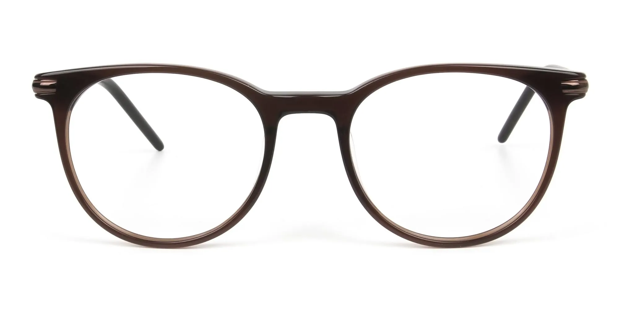 Dark Brown Round Spectacles with Silver Detailing Temple