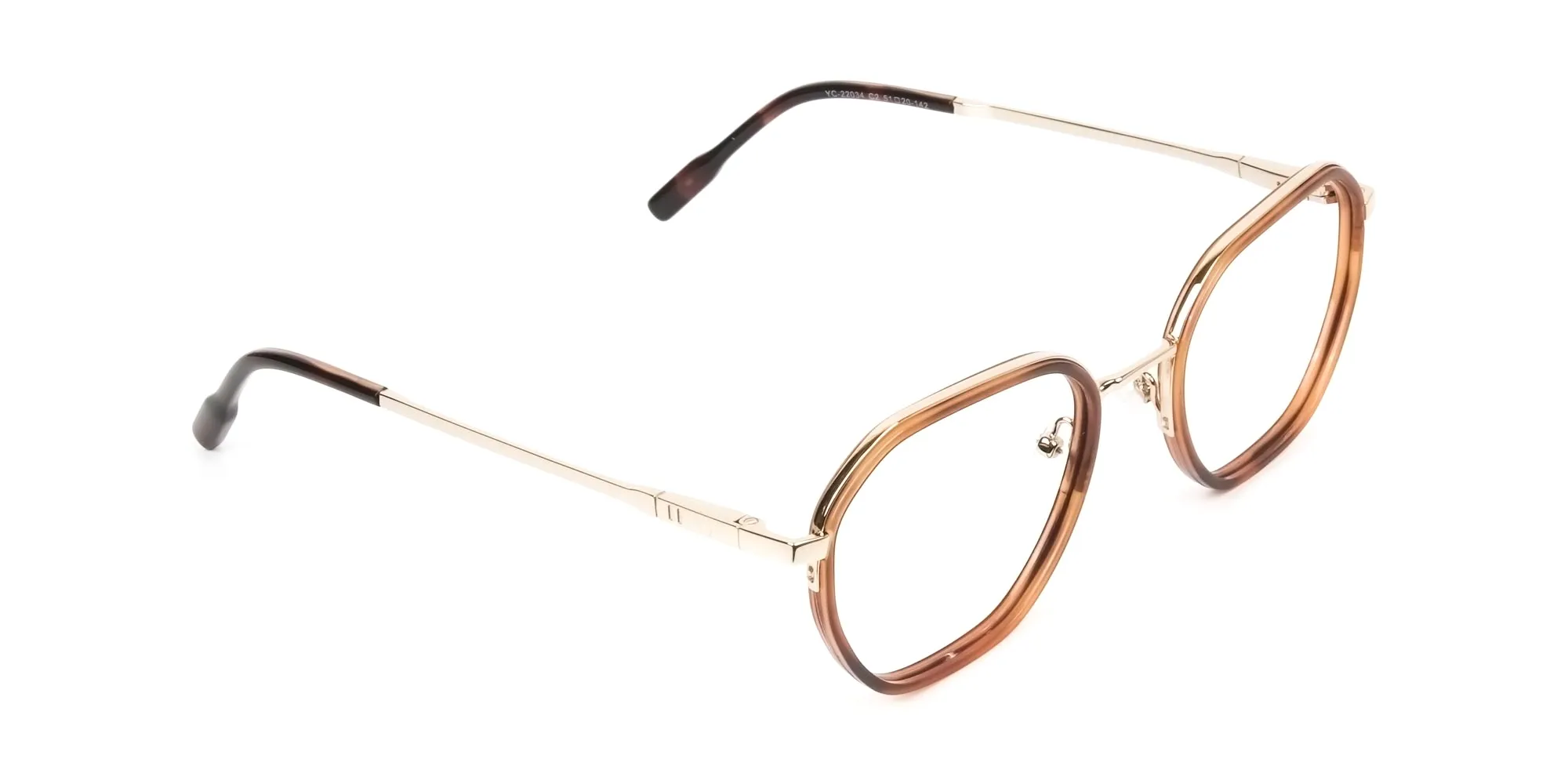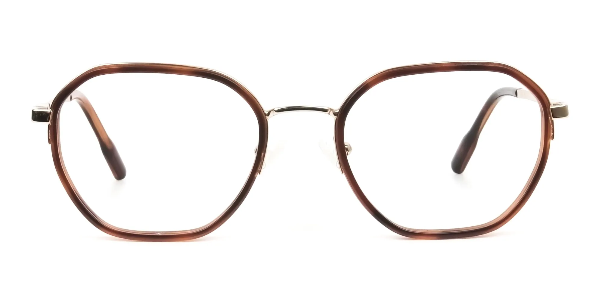 Brown red tortoise geometric glasses help you slay every party or casual day out with friends. Thanks to its ultimately sauve combination of geometric and square shapes. These suit beautifully well on face shapes that are round or oval. That too, on almost any casual occasion. The chic pair can be donned as reading, prescription, or even fake glasses that help you portray your unique persona. The glasses sport a full rim that attracts attention to your eyes for you to collect adoring glances from the people around. The terrific colours, brown and red add some feisty vibes that every attire needs. Being a unisex pair, every man and woman can enjoy this delightful pair. That too, with the extravagant tortoiseshell style that’s rocking the trend charts these days. The eyeglasses are made of metal and acetate that keep it balanced and lightweight. Its temples are golden in colour that ought to be admired. It is a hipster pair with top notch spring hinges, frame front, comfy nose pads, and screws. Each of these elements of the Brown Red Tortoise Geometric Glasses, add their essence and make them the flattering gem you need.